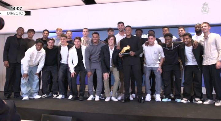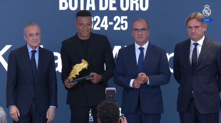 10月31日訊 姆巴佩在伯納烏球場貴賓室領取上賽季的歐洲金靴獎杯。這是姆巴佩生涯首次斬獲歐洲金靴,也是烏戈-桑切斯和C羅之后的皇馬第三人。