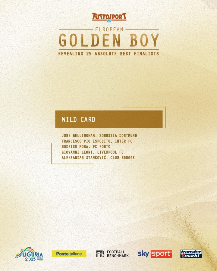 10月15日訊 金童獎(jiǎng)公布25人候選,庫(kù)巴西、杜埃、懷森、斯凱利、居萊爾、小貝林厄姆在列。