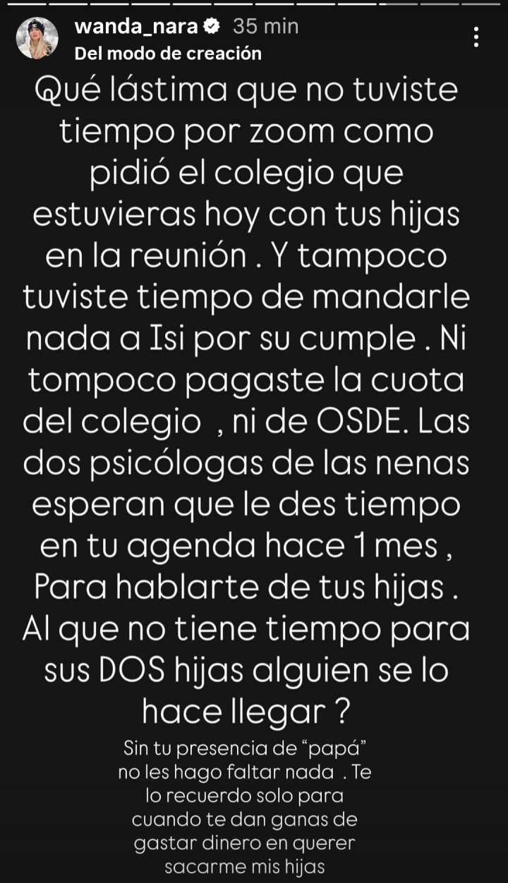 伊卡爾迪前妻旺達(dá)·娜拉連續(xù)更新兩條社媒社媒,批評伊卡爾迪對待孩子的行為。