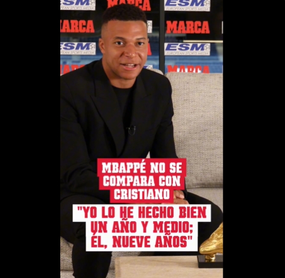 姆巴佩領(lǐng)取上賽季歐洲金靴,他接受《馬卡報》專訪,談到與C羅的比較。