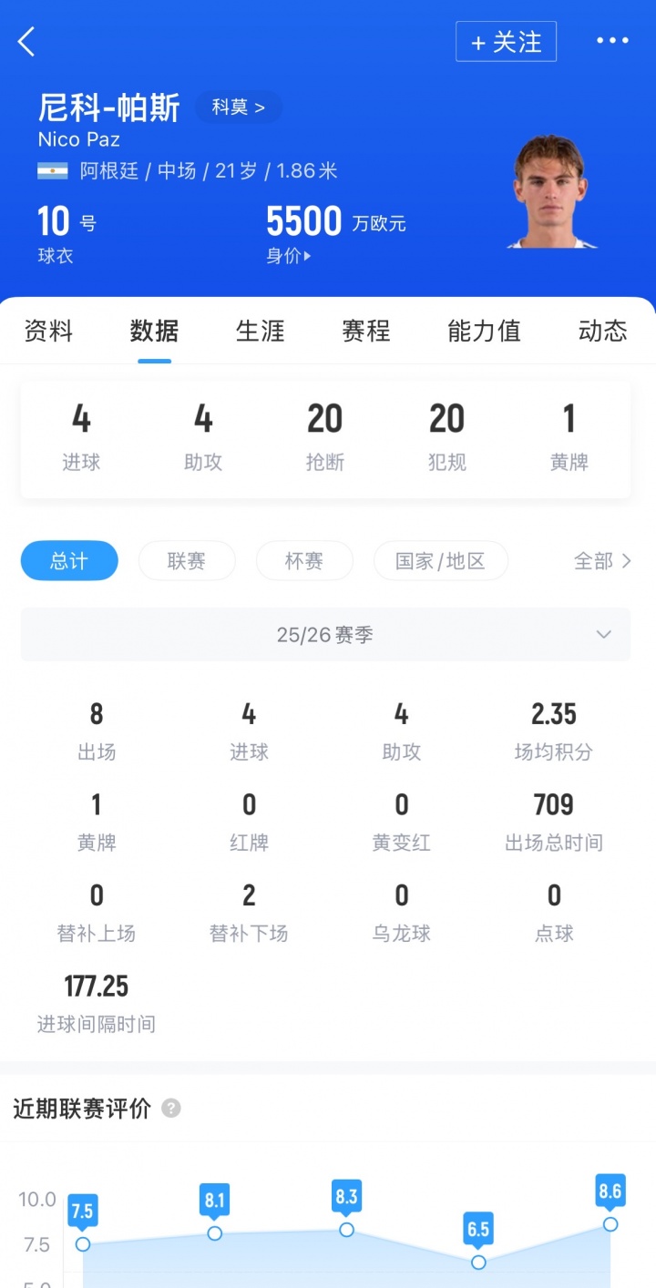 羅馬諾在播客中說道:“帕斯天賦驚人,已經(jīng)吸引了全歐洲的關注。熱刺在此前就曾試圖簽下他,報價總金額高達7000萬歐元。但科莫和皇馬都拒絕了這份報價。要知道,盡管帕斯名義上歸屬科莫,但皇馬有他50%的轉(zhuǎn)會分成以及1000萬歐元的回購條款。