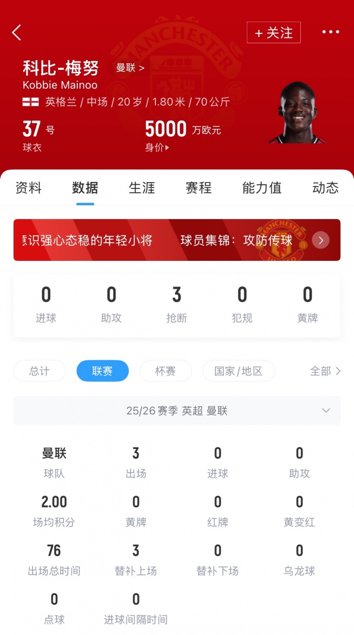 09月27日訊 今日曼聯公布對布倫特福德首發(fā)陣容,20歲中場梅努繼續(xù)擔任替補,本賽季英超全部擔任替補。值得一提的是,據此前羅馬諾等多家媒體消息,梅努在今夏因擔憂出場時間曾申請租借離隊,但曼聯拒絕了這一提議。這名20歲的中場小將目前德轉身價5000萬歐元。本賽季英超出場三次全部為替補,且總計時長僅為76分鐘。